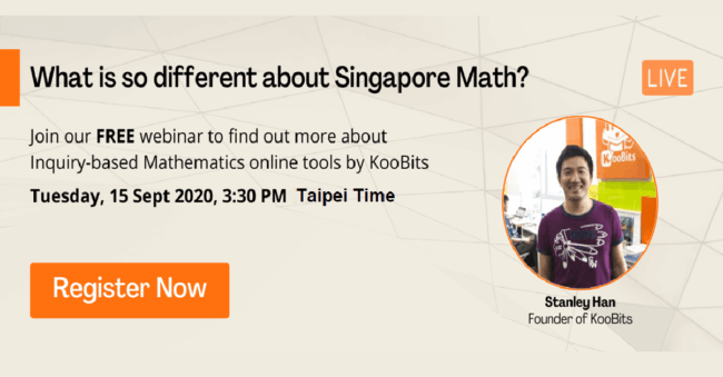 免費數學線上研討會來了!數學老師們別錯過囉!這次要介紹的內容和新加坡數學有關。新加坡數學是一種高效的教學方法,最初由新加坡教育部開發,在新加坡教育部的數學框架下,其所強調的重點「使用數學來解決問題」。9月15日下午,來聽聽KooBits創辦人分享新加坡數學的神奇之處!