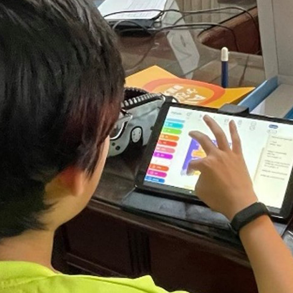 除了透過Al程式編程訓練孩子邏輯思維外,同時導入網頁程式 ( HTML 及 CSS 基礎程式 ) 學習,引導學生設計可視化的互動網頁(智能遙控器),以其串聯硬體設備與雲端數據,實踐物聯網應用。