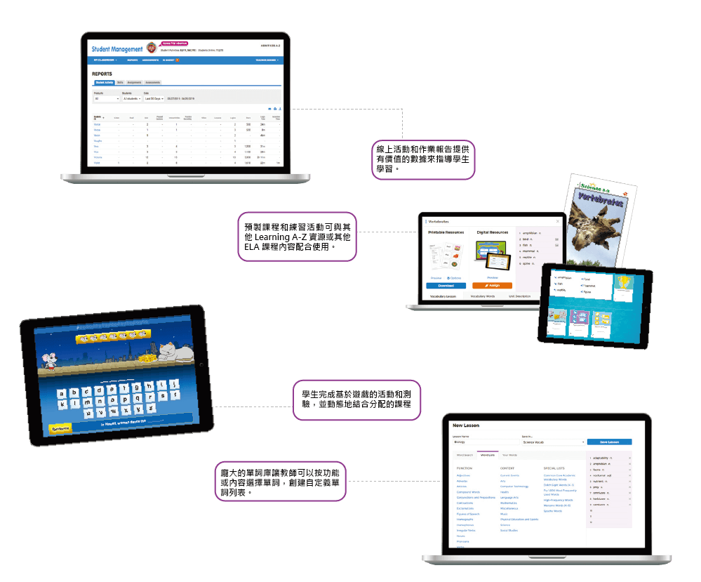 - 可搭配其他指定 Learning A-Z 出版產品使用,強化教學內容及品質,學單字不再死背