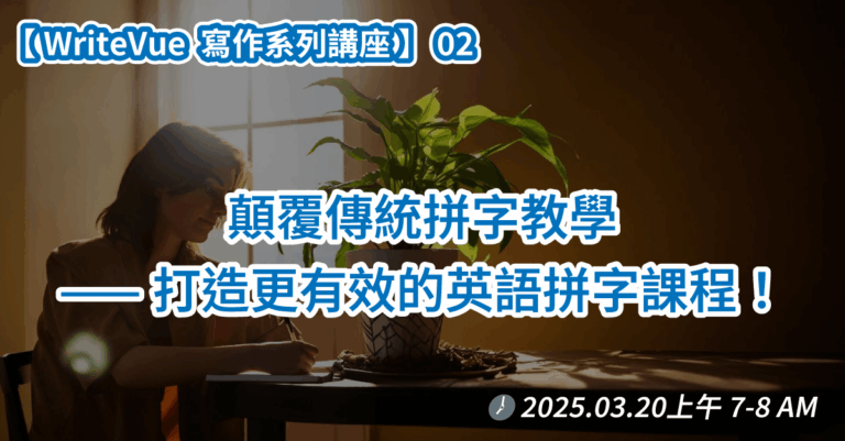 3/20 上午的免費講座,將帶您深入了解英語拼字教學的最新趨勢,提供可立即應用的策略,幫助學生從「死記硬背」轉變為真正理解拼字規則,提升寫作與閱讀能力!👉本講座適合國高中以上英文教師與,名額有限、歡迎提早報名!