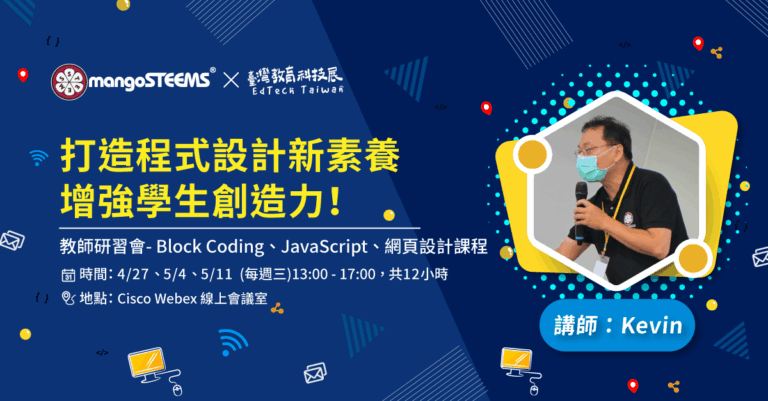 教「程式語言」乍聽之下好似困難,其實一點都不難!👉本教師研習會提供老師,從主題、任務形式認識程式語言與邏輯訓練,進一步帶領學生用語法創造屬於自己的成品。透過體驗跨域學習,多元、生活化又趣味的程式語言課程活動,結合生活科技增強學生創造力,培養數位時代下,學生發掘問題及解決問題的能力!